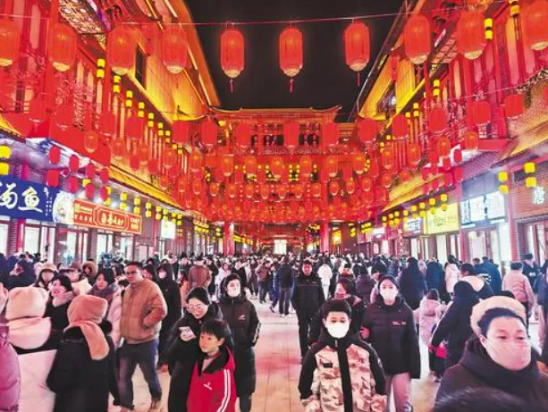 2025年12月31日,游客在宫城印巷·宫里街文旅街区游玩。河北日报记者 史晓多摄