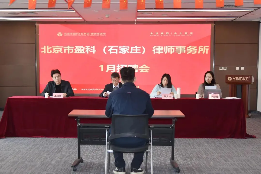 1月13日下午,北京市盈科(石家庄)律师事务所(下称“盈科石家庄”)成功举办“盈科石家庄2026年1月招聘会”。本场招聘会由盈科石家庄商事争议与经济犯罪法律事务部副主任刘凯律师、张文怡律师、王炳康律师、人资经理袁梦雅组成面试小组,对每一位怀揣法律梦想的应聘者进行了全面而深入的评估。
