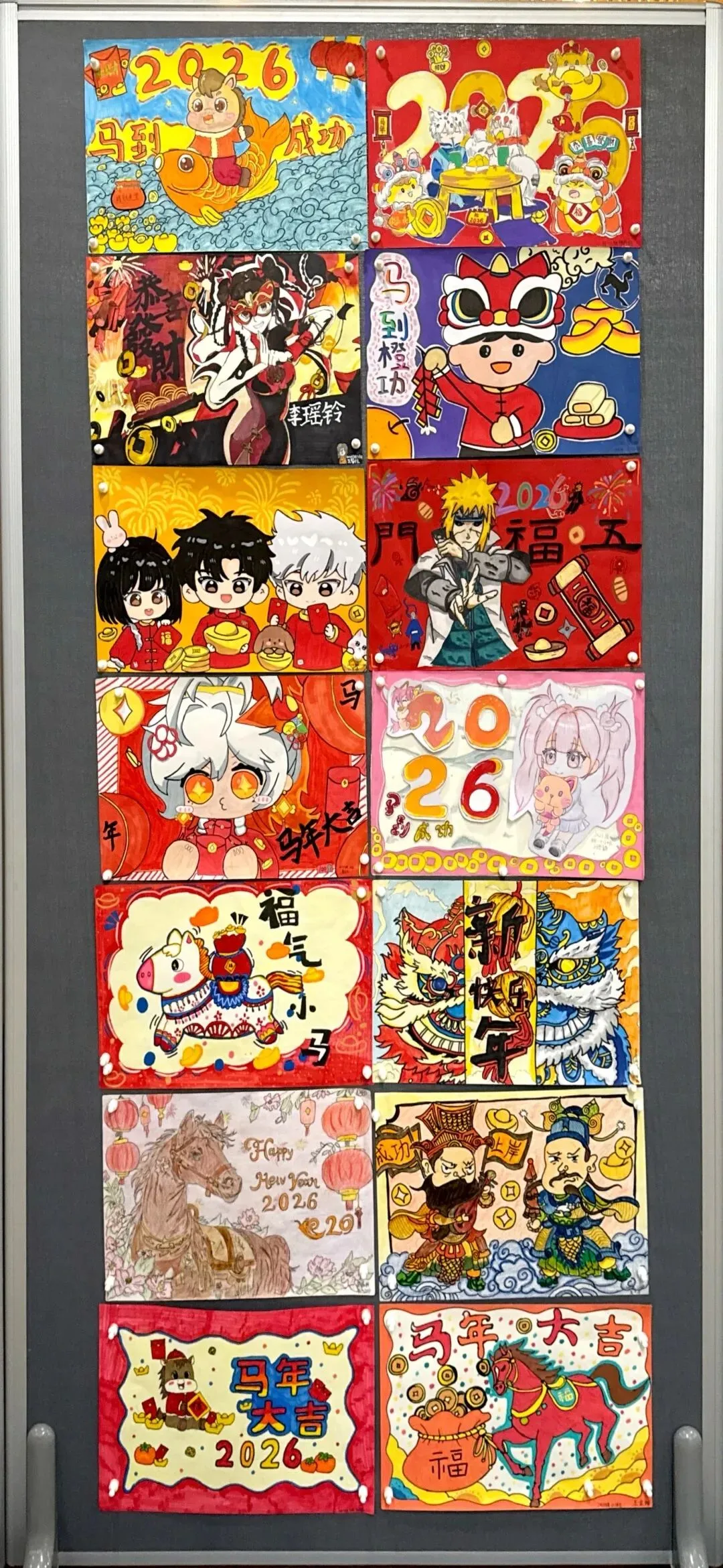 部分作品融入生肖纹样、祥云等传统元素,使其造型精巧别致,每一处镂空细节、每一抹色彩搭配,都承载着学生们对马年的美好祝福。