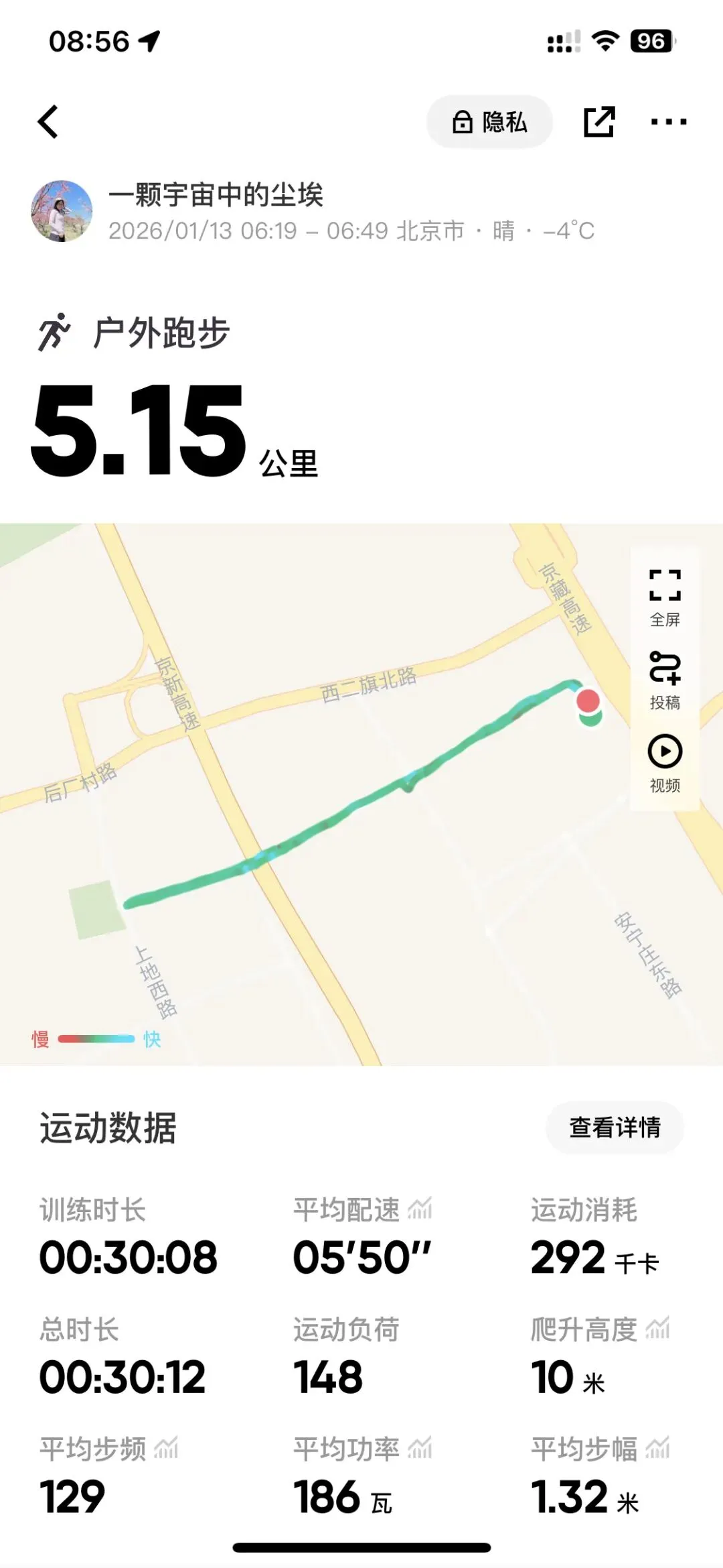运动手表还在维修中,所以今天跑步的数据可能不太准确——好在常跑的路线,距离和配速心里有数。