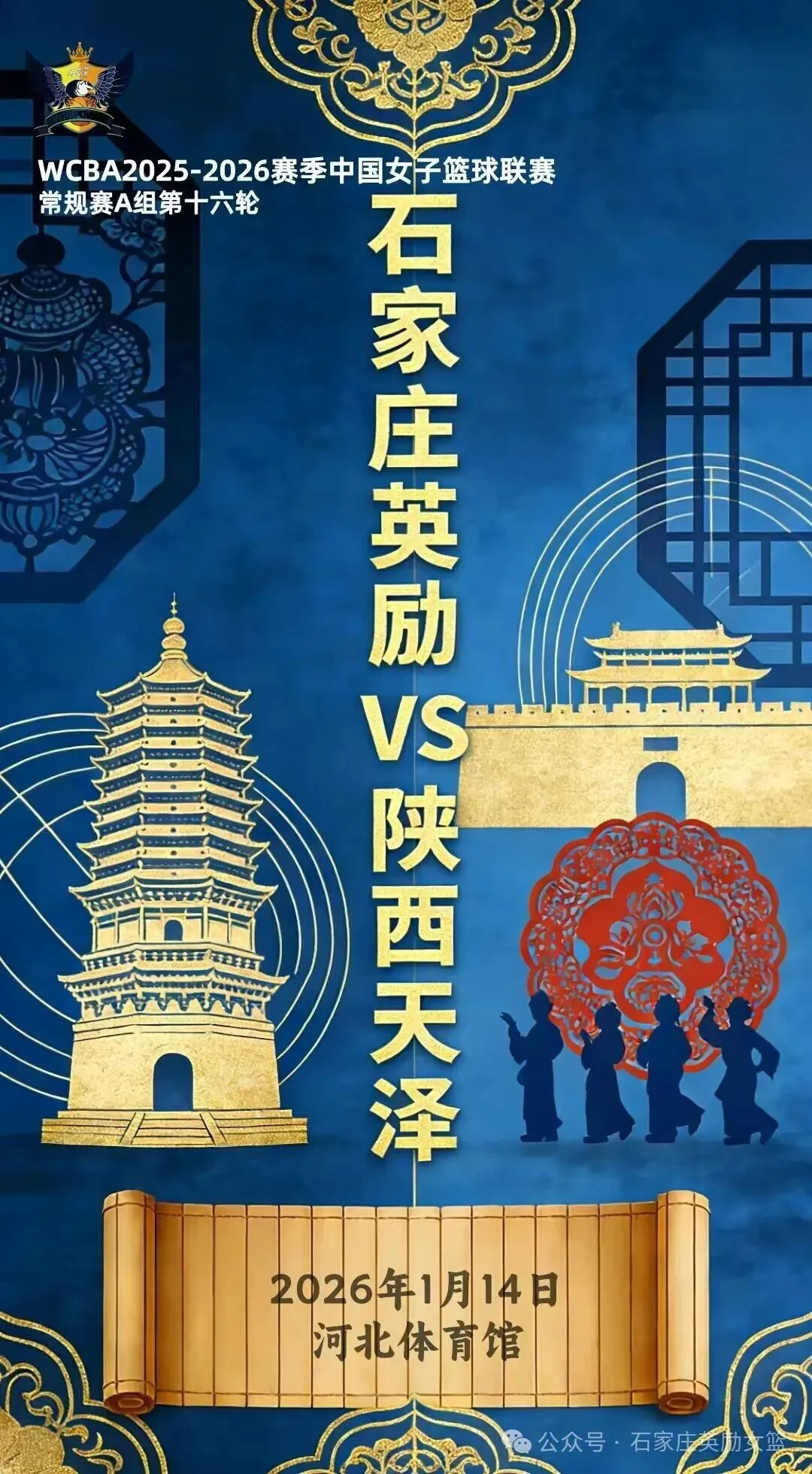 石家庄英励女篮将出战 2025-2026 赛季 WCBA 中国女子篮球联赛常规赛第十六轮赛事,主场对阵陕西天泽女篮。