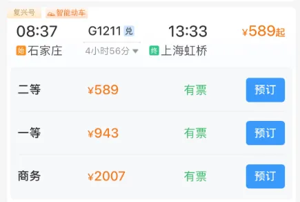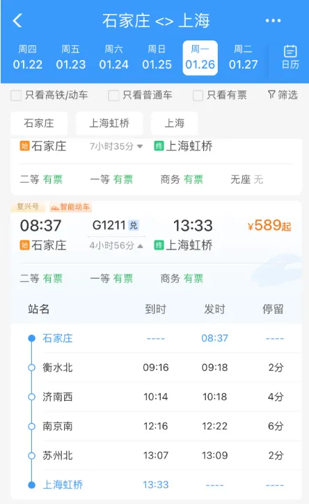 ✅途经站点:石家庄、衡水北、济南西、南京南、苏州北、上海虹桥