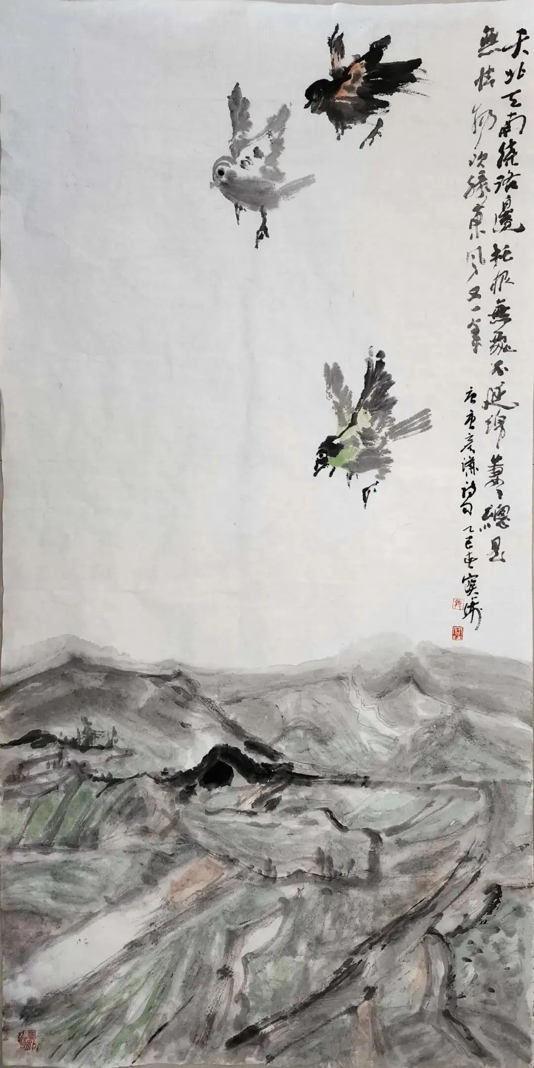 国画欣赏:《初绿东风又一年》136cm×68cm