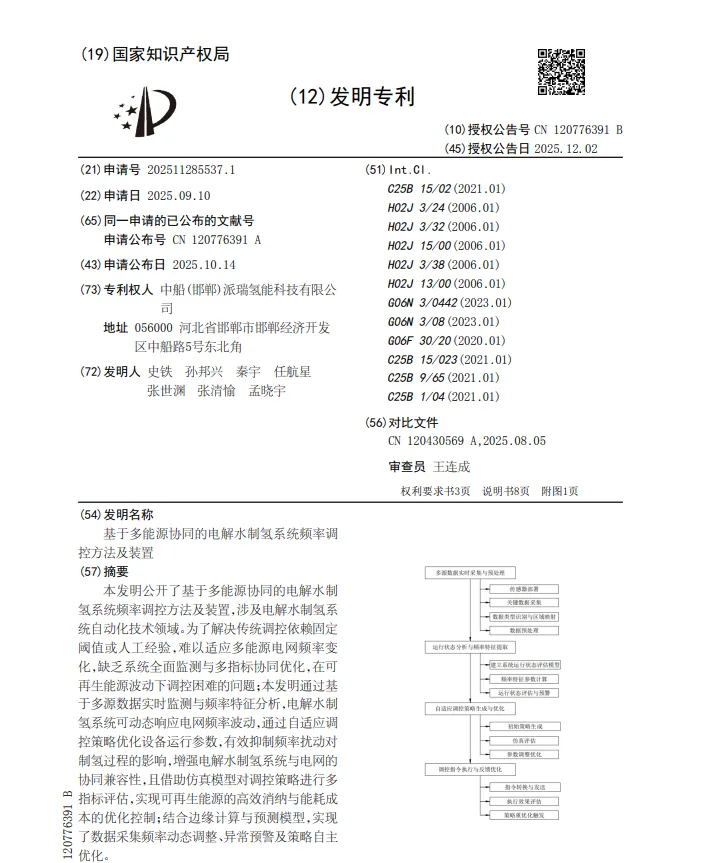 1 .该专利聚焦于电解槽内部性能优化,缺乏对多能源协同供电场景下电网频率波动的应对机制,无法动态调整制氢系统运行参数以适应电网频率变化,易导致系统与电网之间的协同性不足;