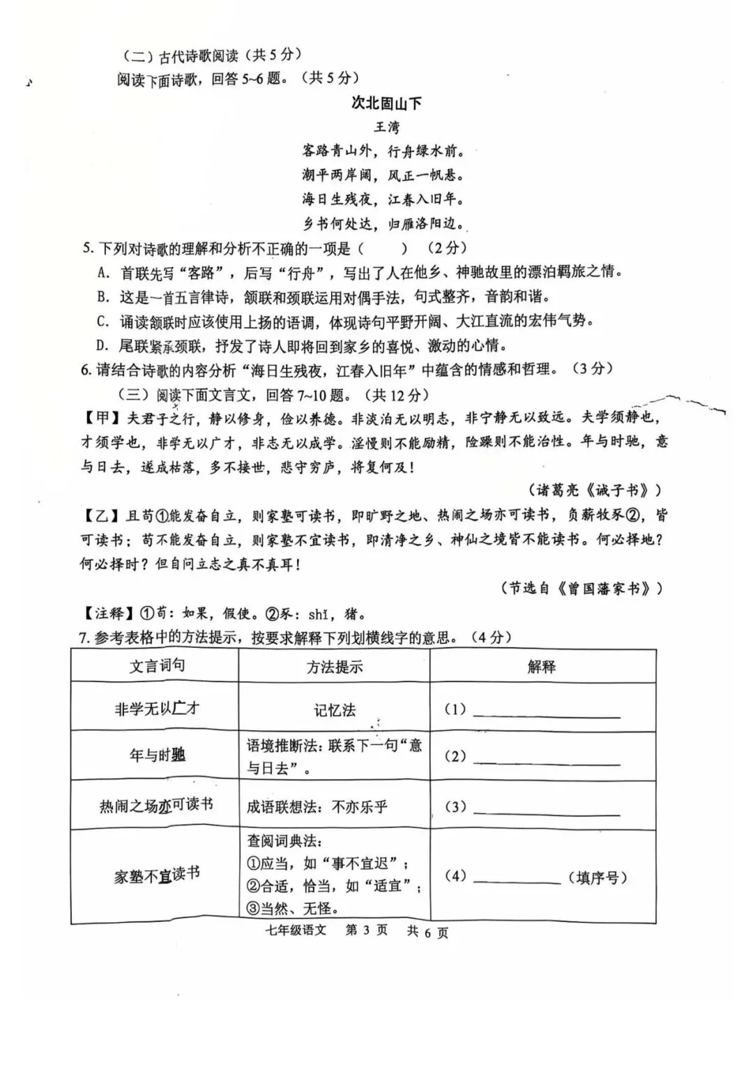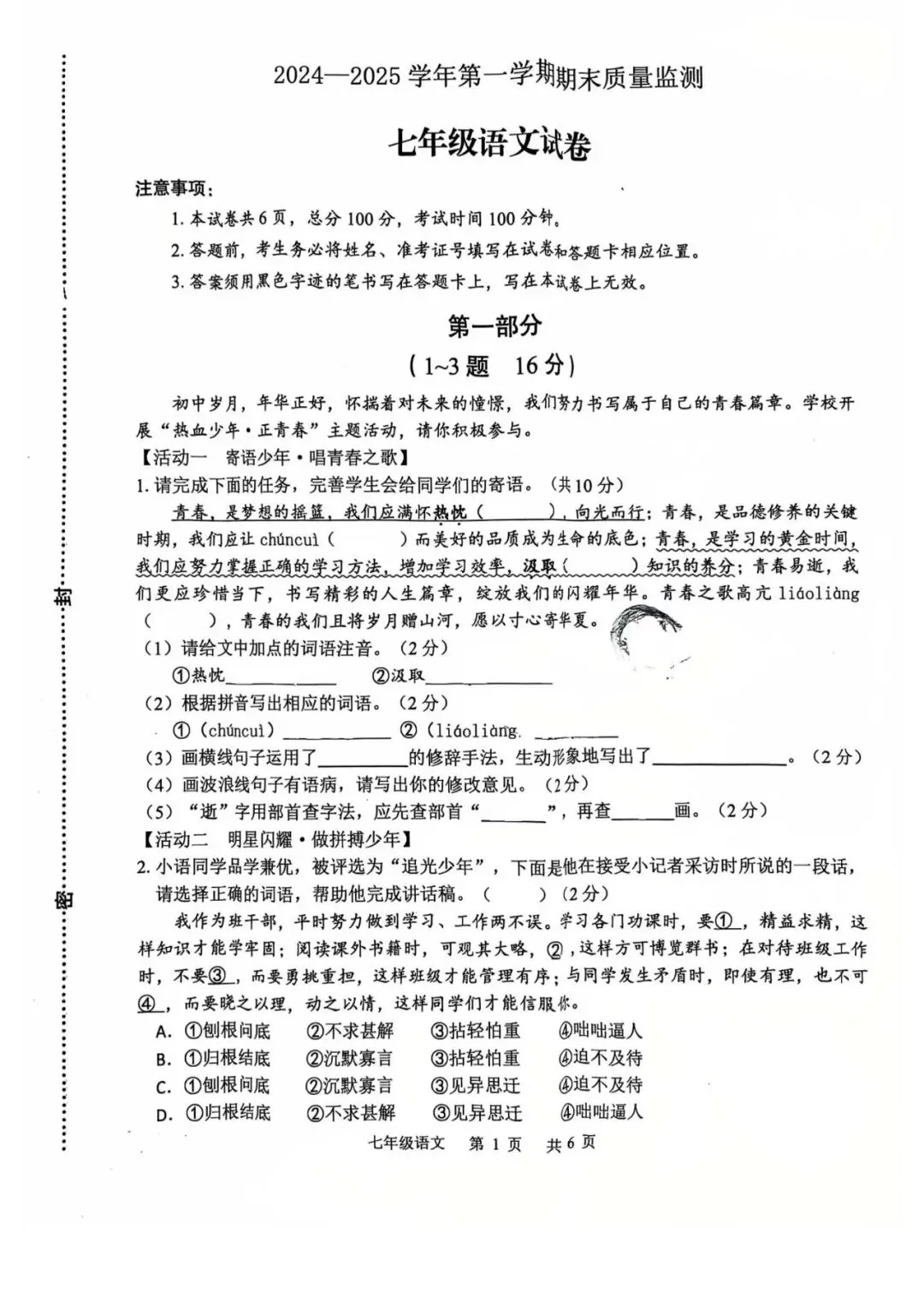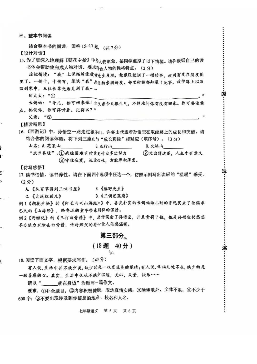 石家庄42中24-25年七年级上册语文期末试题
