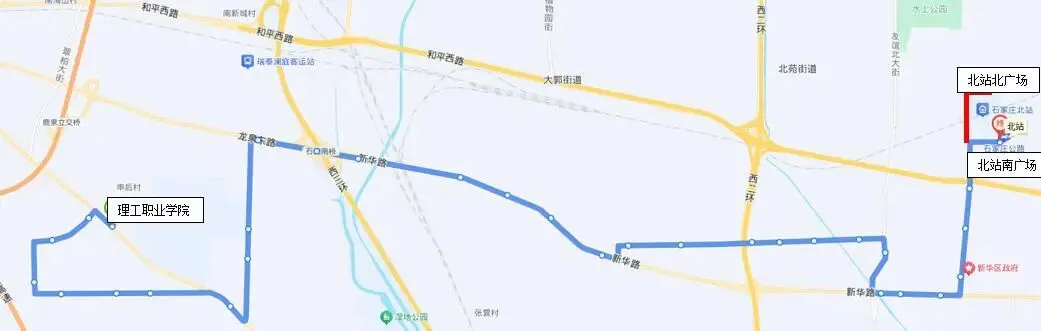 2.调前路径:石柏大街、杏苑路、御园路、石柏大街、昌盛大街、龙泉西路、新华路、建东街、合作路、泰华街、市庄路、红军大街、和平路。