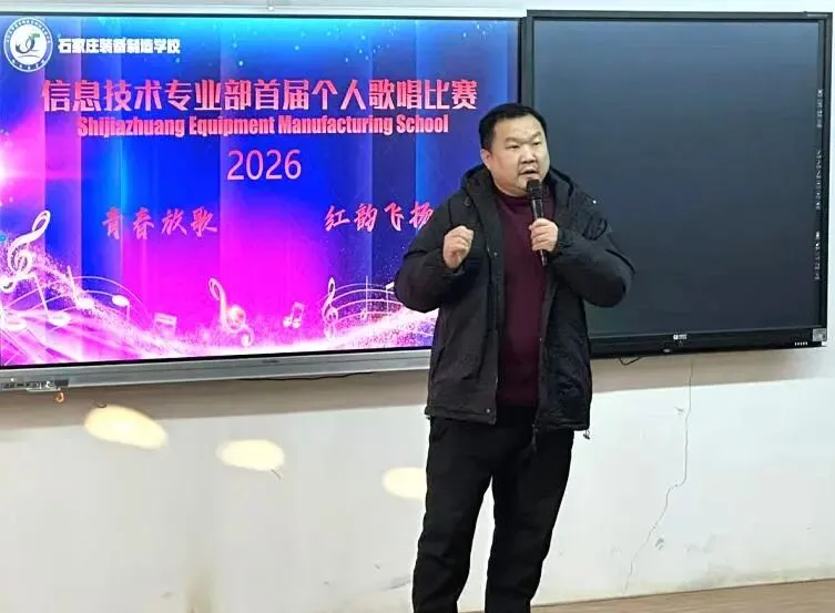 2026年1月13日下午,石家庄装备制造学校信息技术专业部首届个人歌唱比赛决赛在学校5号楼报告厅成功举行。本次比赛旨在丰富学生校园文化生活,展现信息专业部学生多才多艺、朝气蓬勃的精神风貌。