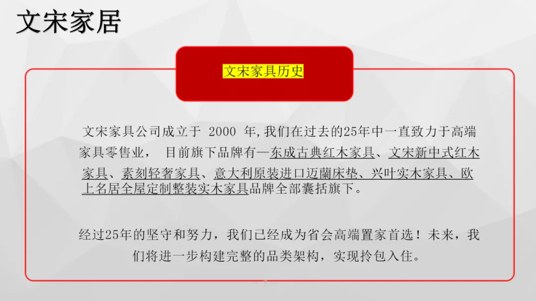 作为省会高端置家首选品牌,文宋家居自2000年成立以来,始终深耕高端家具零售业,历经二十五年坚守与深耕,已构建起覆盖多元风格、全场景需求的完整品类架构,致力于为消费者提供"拎包入住"的一站式高品质家居解决方案。旗下集结了众多极具市场竞争力的核心品牌,每一款产品都凝聚着匠心与创新,彰显着独特的美学追求与实用价值。