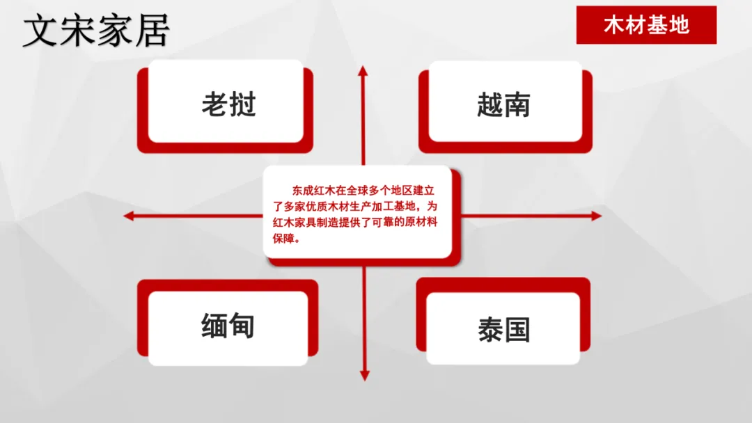 为保障产品品质根源,文宋家居在老挝、越南、缅甸、泰国等全球多个地区建立优质木材生产加工基地,为红木家具制造提供稳定可靠的原材料供应,从源头把控每一件产品的品质根基,彰显对匠心品质的极致追求。