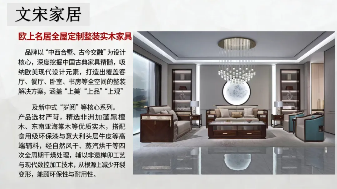 在国际合作与全屋定制领域,文宋家居同样表现亮眼。意大利原装进口迈蘭床垫拥有45年品牌历史,出口全球60多个国家和地区,遵循人体工程学与睡眠研究学设计理念,通过意大利、德国、英国及欧盟世界级质量认证,为消费者带来高品质睡眠体验。东成定制选用缅甸花梨、黑酸枝等高端材质,提供门、柜体、厨房、衣帽间等全品类定制服务,满足高端人群个性化需求;兴叶实木家具以"胡桃新语""书檀"等系列为核心,在传统工艺基础上融入现代审美,兼具实用功能与艺术价值;欧上名居全屋定制整装实木家具秉持"中西合璧、古今交融"设计核心,精选非洲加蓬黑檀木、东南亚海棠木等优质实木,搭配环保漆与意大利头层牛皮,经四次全周期干燥处理,结合非遗榫卯工艺与现代数控技术,兼顾环保性与耐用性,覆盖全空间整装需求。