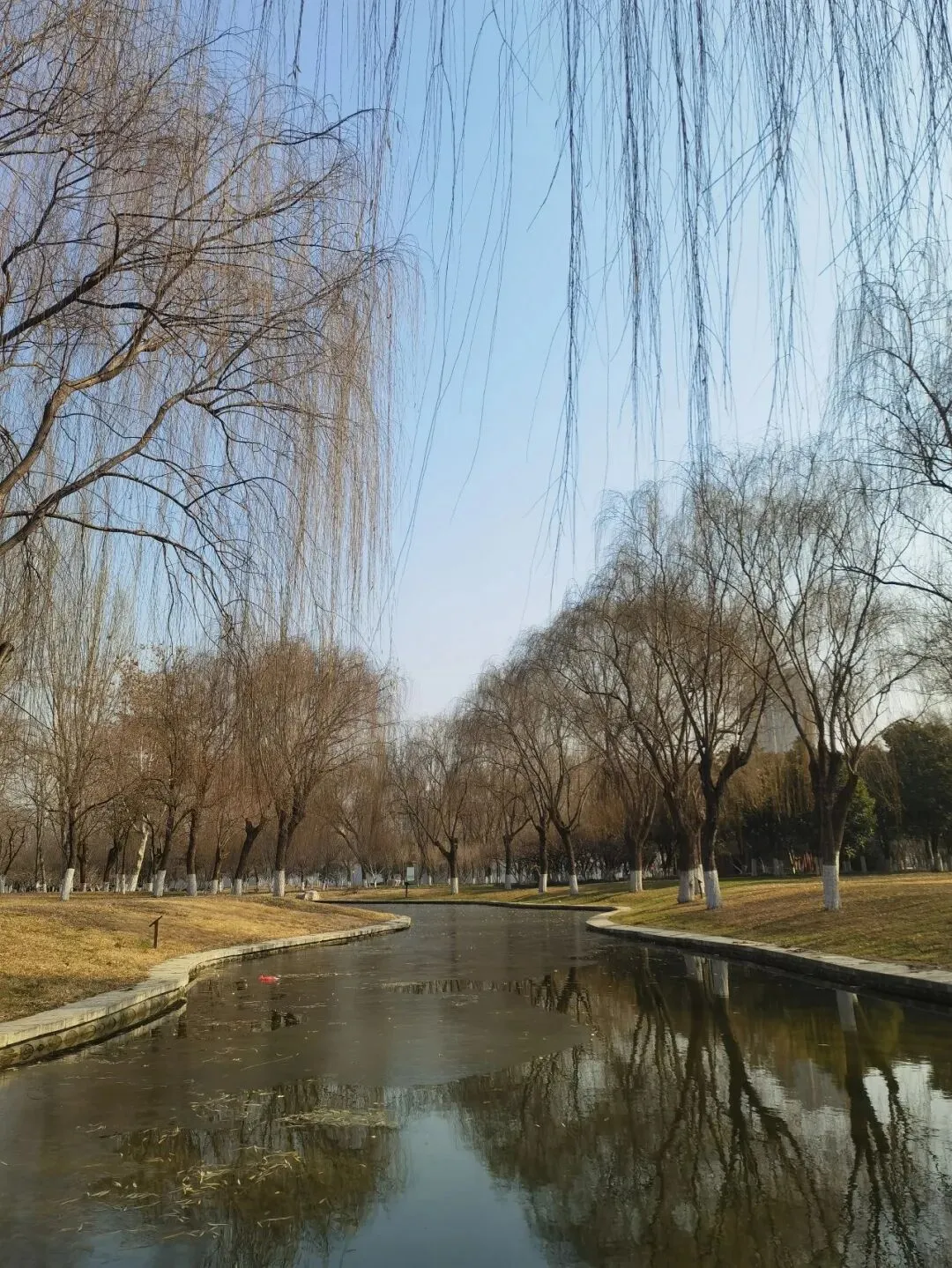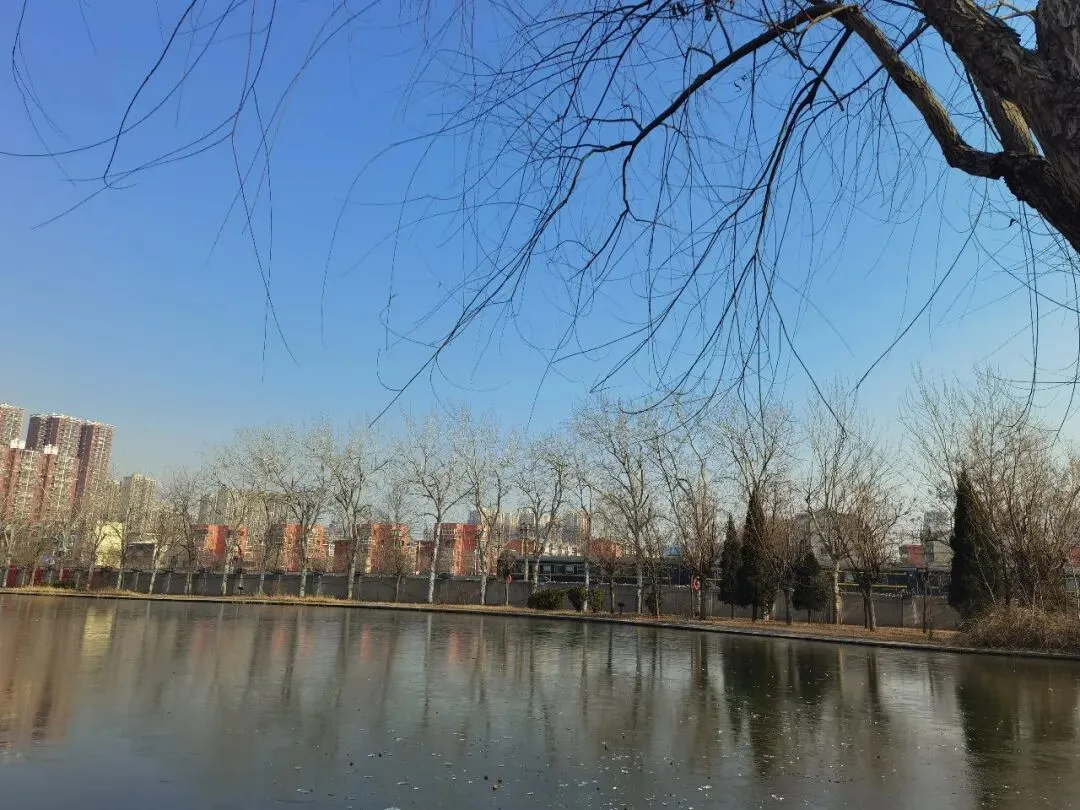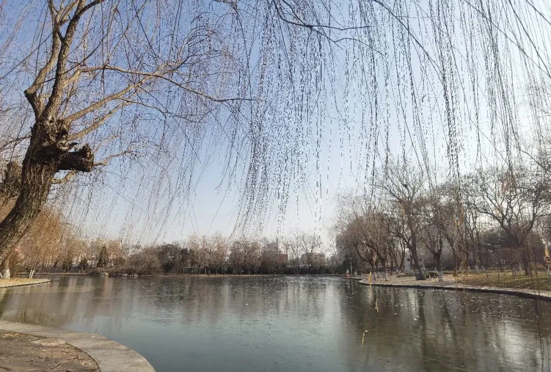 赵苑的湖里结冰了,北方公园的一个景象,我在岸边玩柳条抽冰玩了好久,湖边有人在唱女儿情,旁边配上长笛,很有感觉