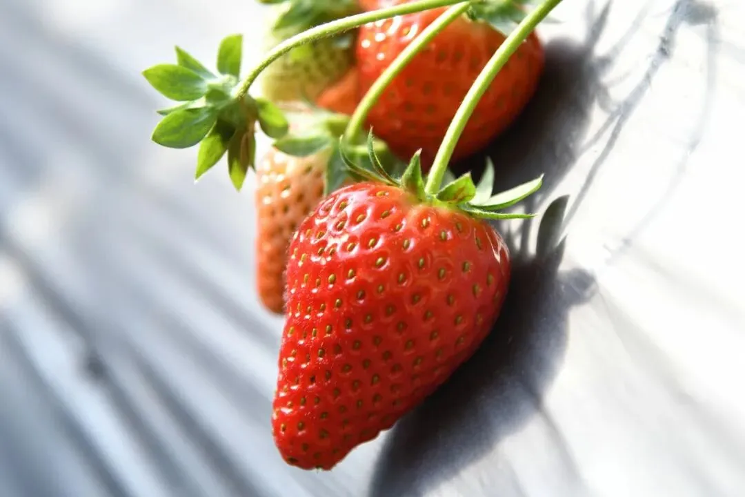 形状细长秀美、色泽鲜亮红粉相间的,则是“章姬”,它肉质细腻柔软,入口即化,带着独特的奶油香气,被人们亲切地称作“奶油草莓”。