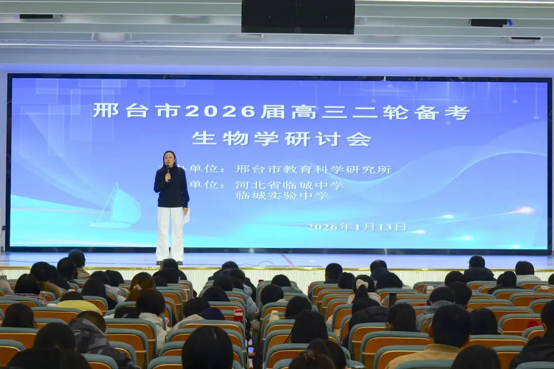 为深化推动“学课标、研教材、减负担、提质量”活动落地要求,及时总结高中“三新”改革实践经验,进一步提高备考效率,共同探讨高考趋势,助力精准备考,1月13日下午,邢台市高三生物二轮复习备考会在我校演艺中心隆重举行。本次会议由邢台市教育科学研究所主办,临城中学和临城实验中学共同承办,吸引了全市各高中生物骨干教师代表220余人齐聚一堂,共研高考新方向。