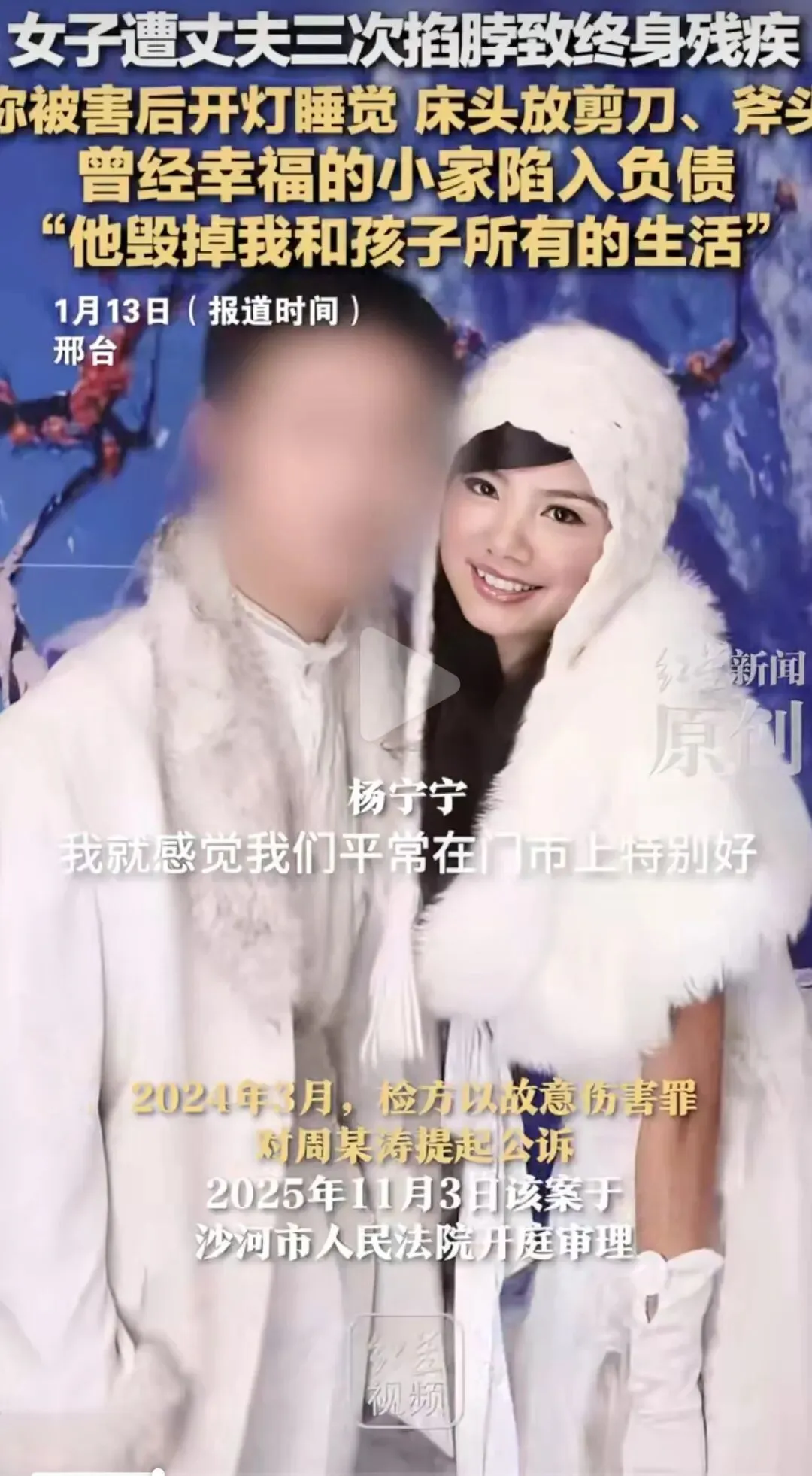 今天又看到一则家暴致残案报道:河北沙河市法院一审审判丈夫周某因故意伤害妻子杨宁宁致其终身残疾,被判处六年有期徒刑,还当庭反诬妻子“毁了这个家”,强调“结婚13年的幸福家庭被你摧毁”,看到这,小编还以为自己看错了字,会错了意,这字都认识,组合在一起怎么就看不懂了,家暴妻子何来幸福家庭一说?