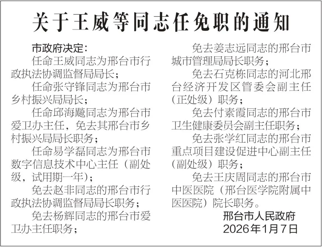>邢台:关于王威同志任免职的通知