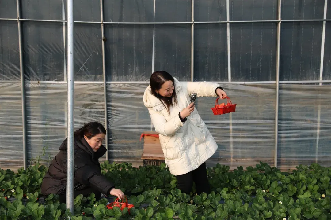 时值冬日,石家庄市高邑县万城镇榆林村党支部领办合作社的温室大棚内暖意融融,鲜红饱满的草莓掩映叶间,果香扑鼻,吸引众多游客前来体验采摘乐趣。
