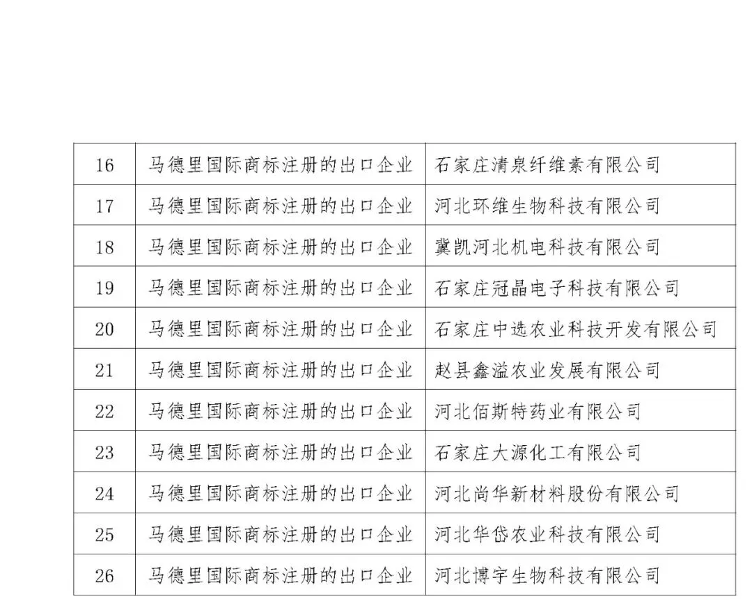 附件1:新取得马德里国际商标注册的出口企业后补助项目拟奖补名单