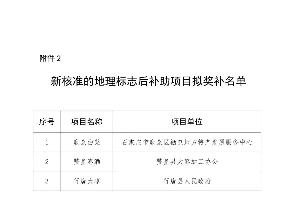 附件2:新核准的地理标志后补助项目拟奖补名单