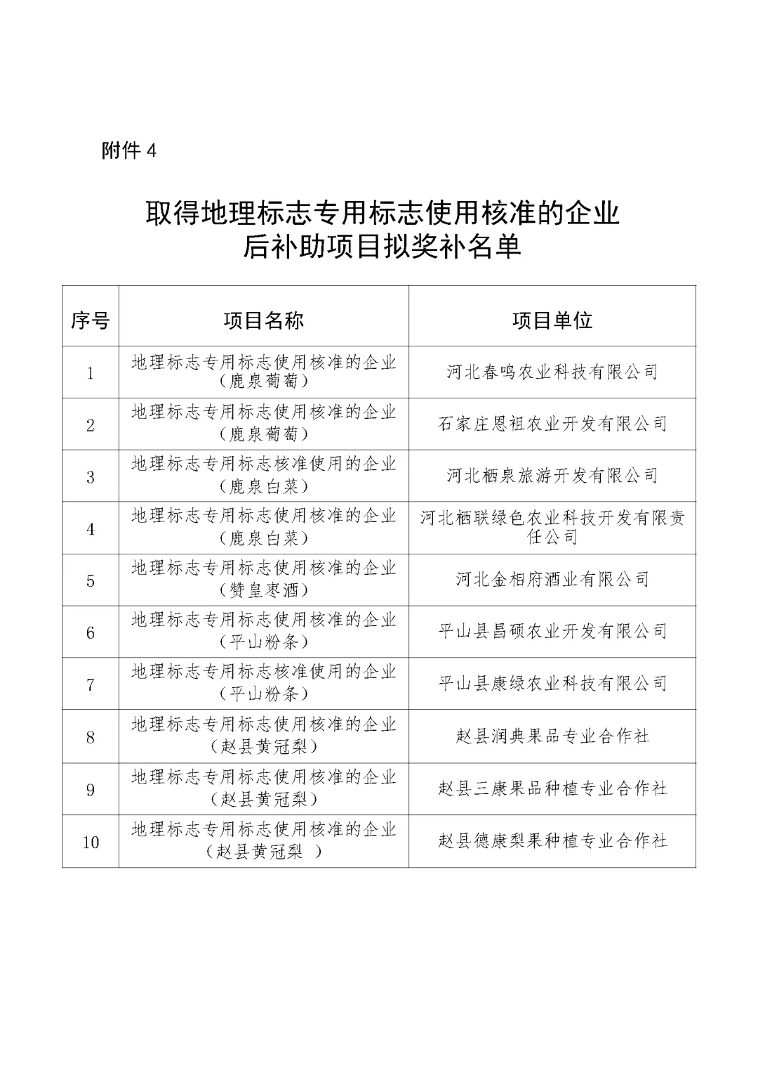 附件4:取得地理标志专用标志使用核准企业后补助项目拟奖补名单