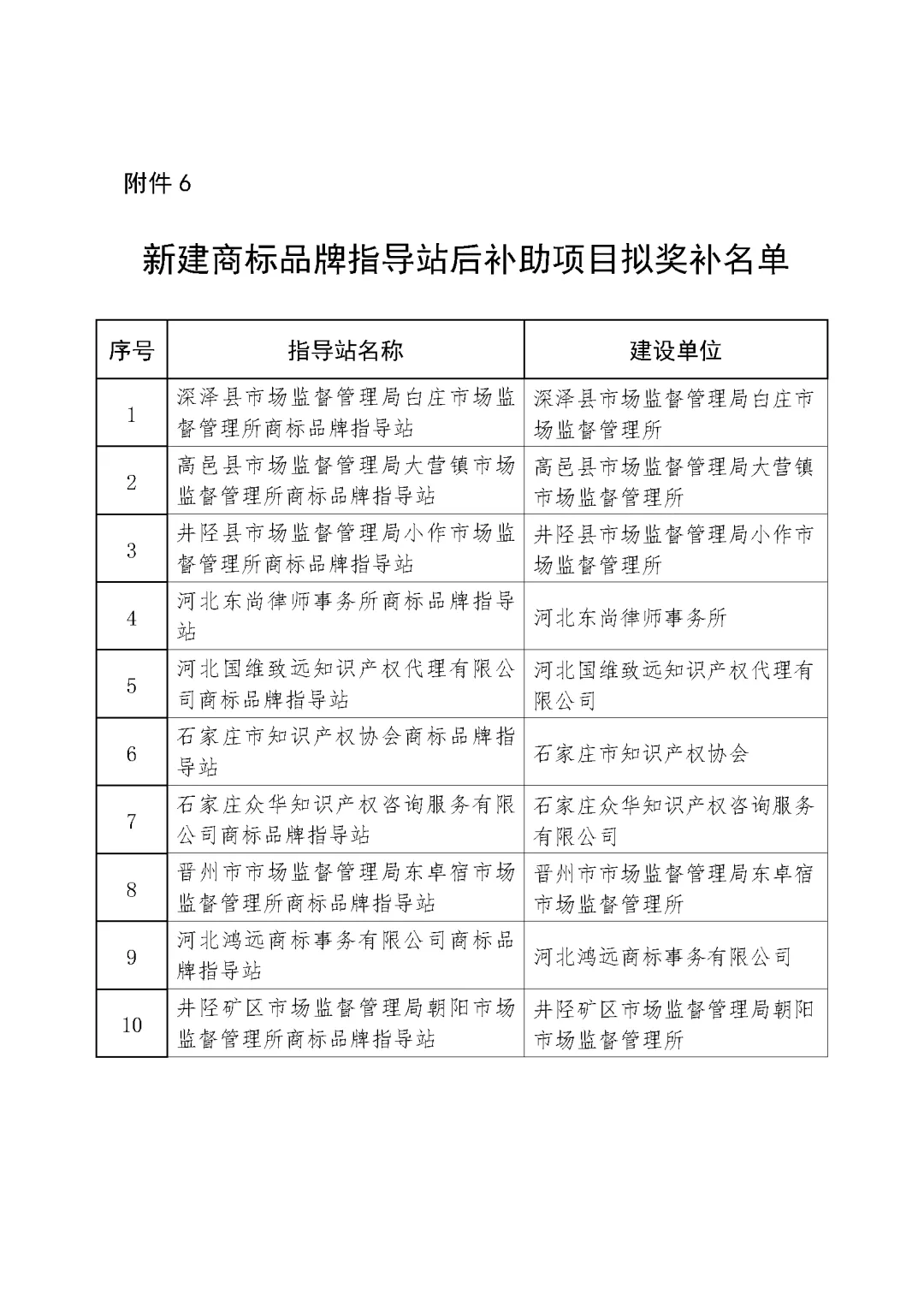 附件6:新建商标品牌指导站后补助项目拟奖补名单