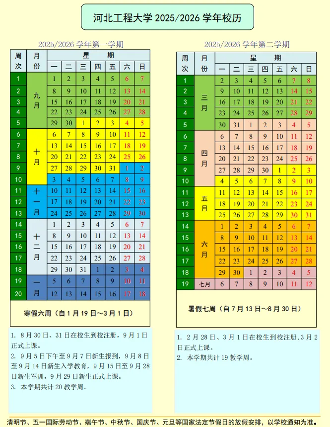 河北工程大学2025-2026校历