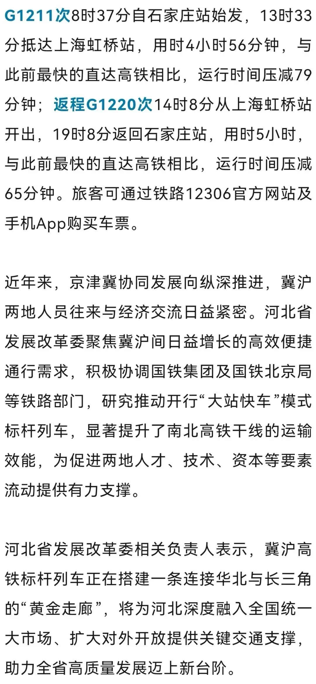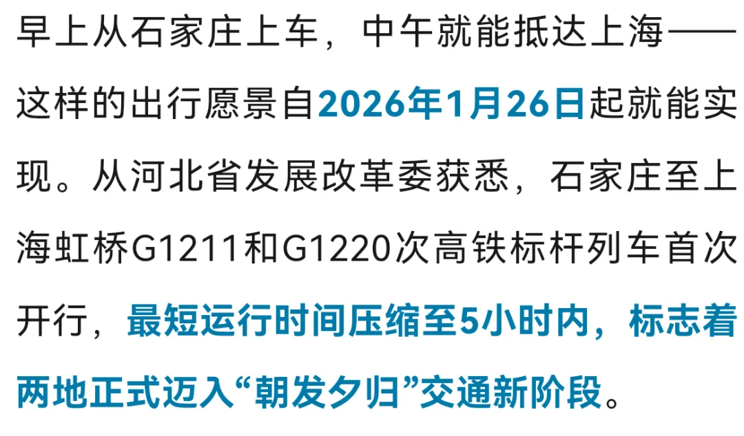 >单程不到5小时!石家庄至上海将首开标杆高铁