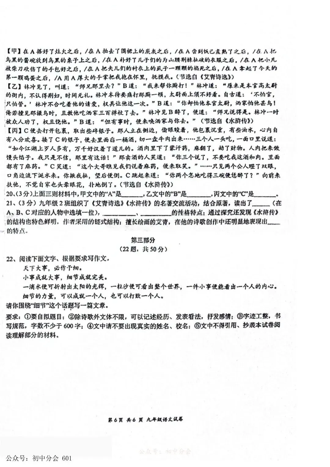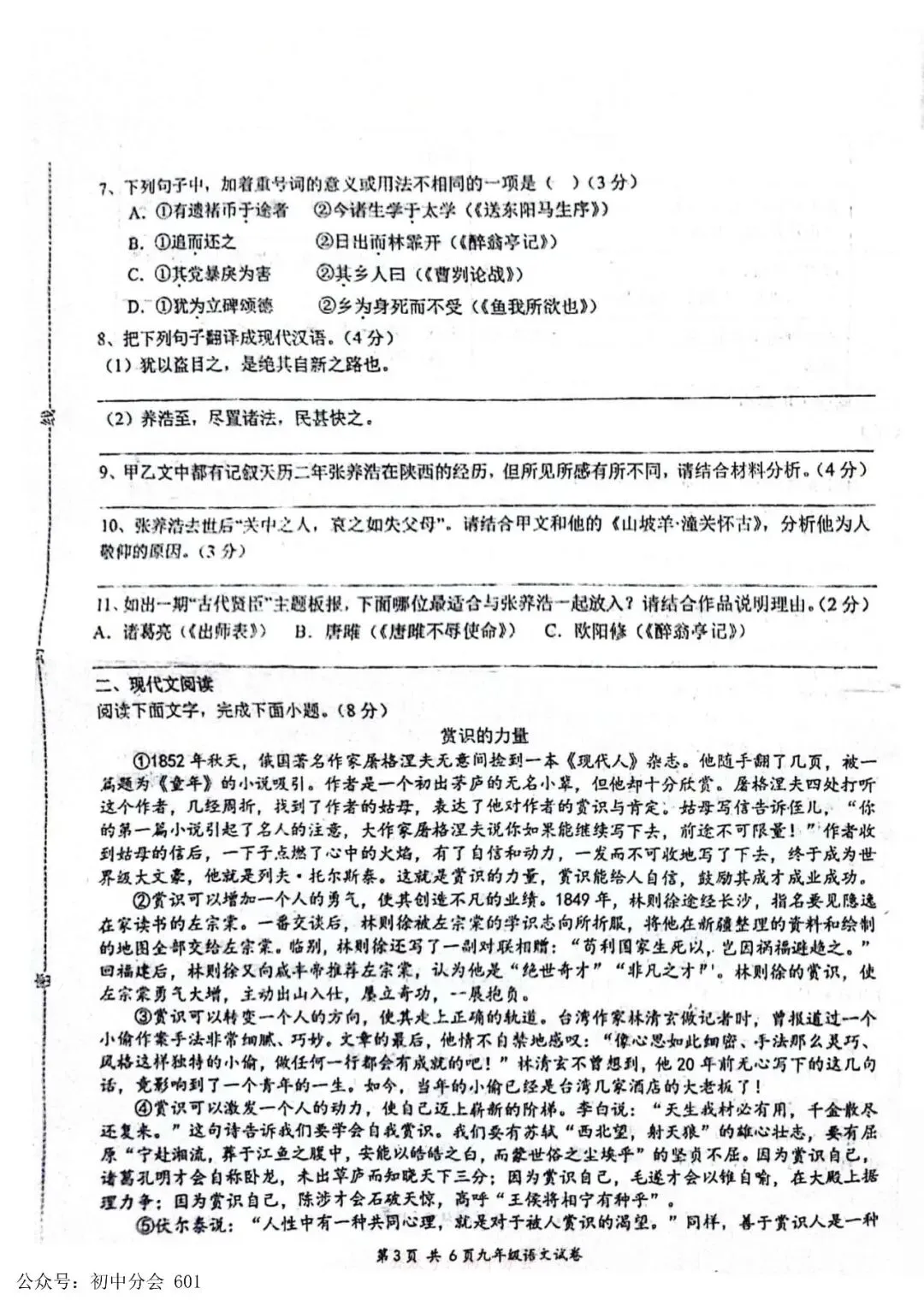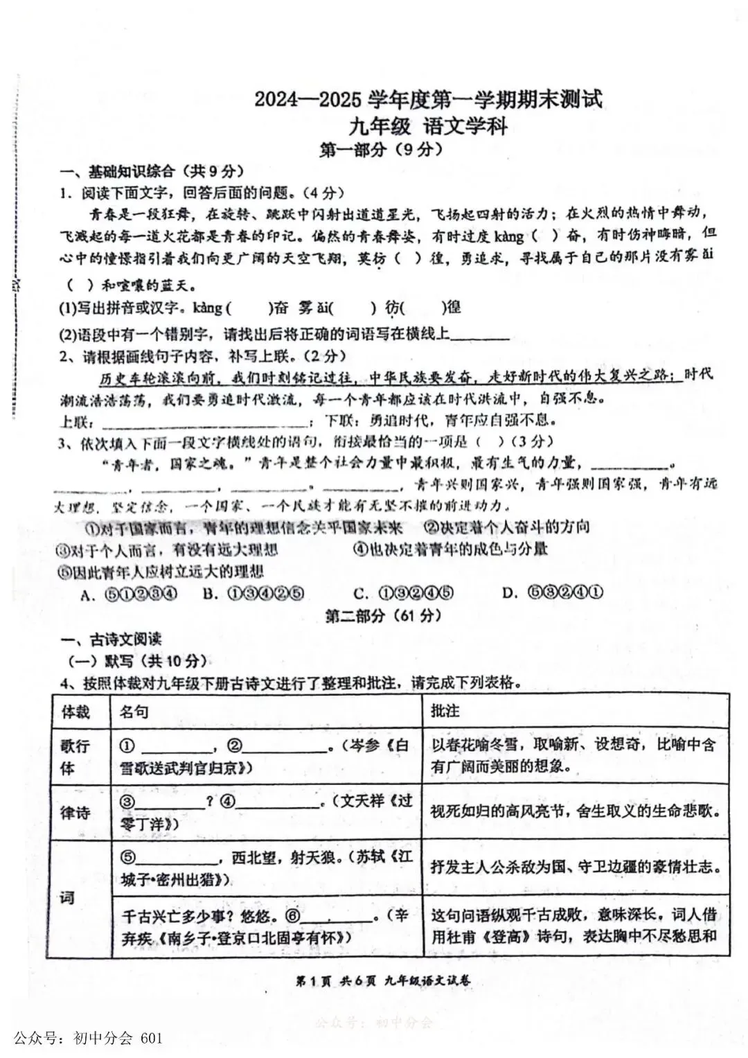 2025.1唐山市古冶区九年级上册数学语文期末试题及答案