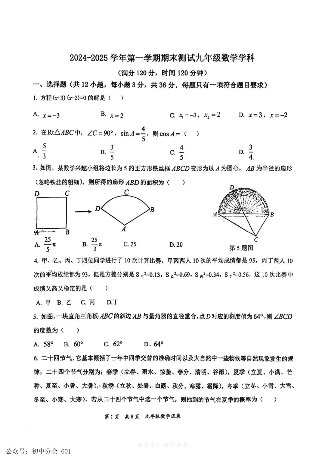 2025.1石家庄市第48中学九年级上学期期末试题(高清)