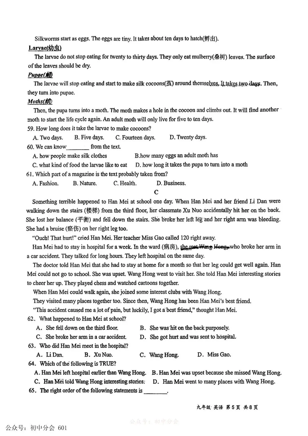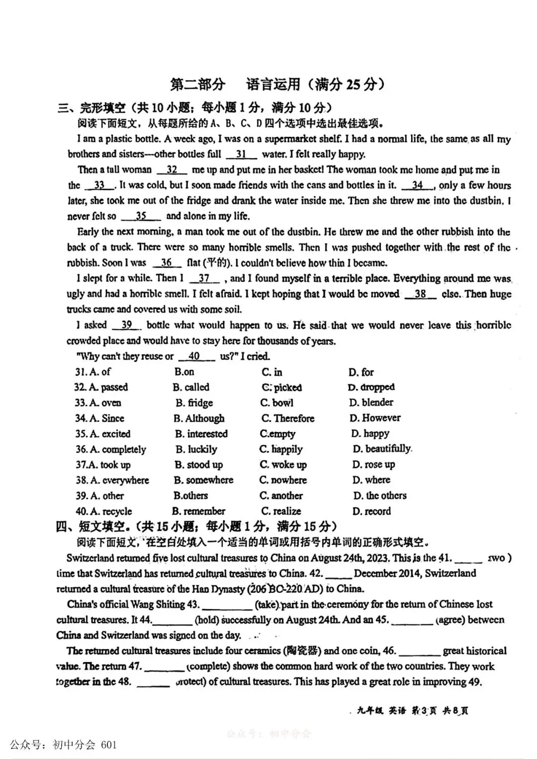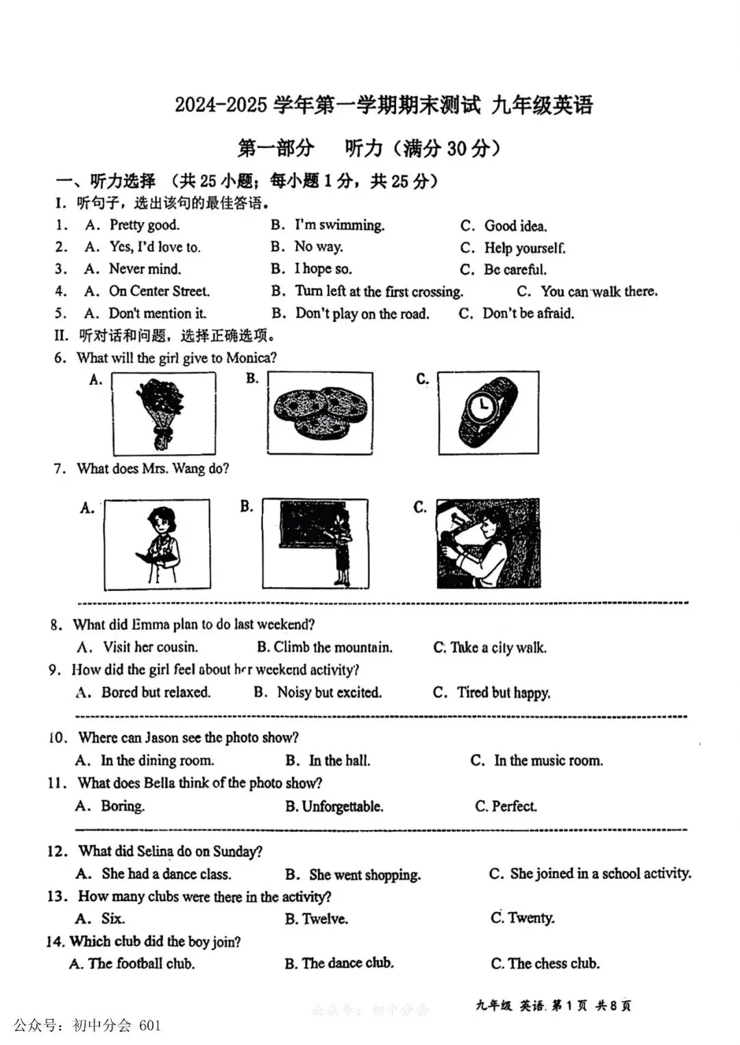 2025.1邢台市九年级期末全科试题及答案(含听力)