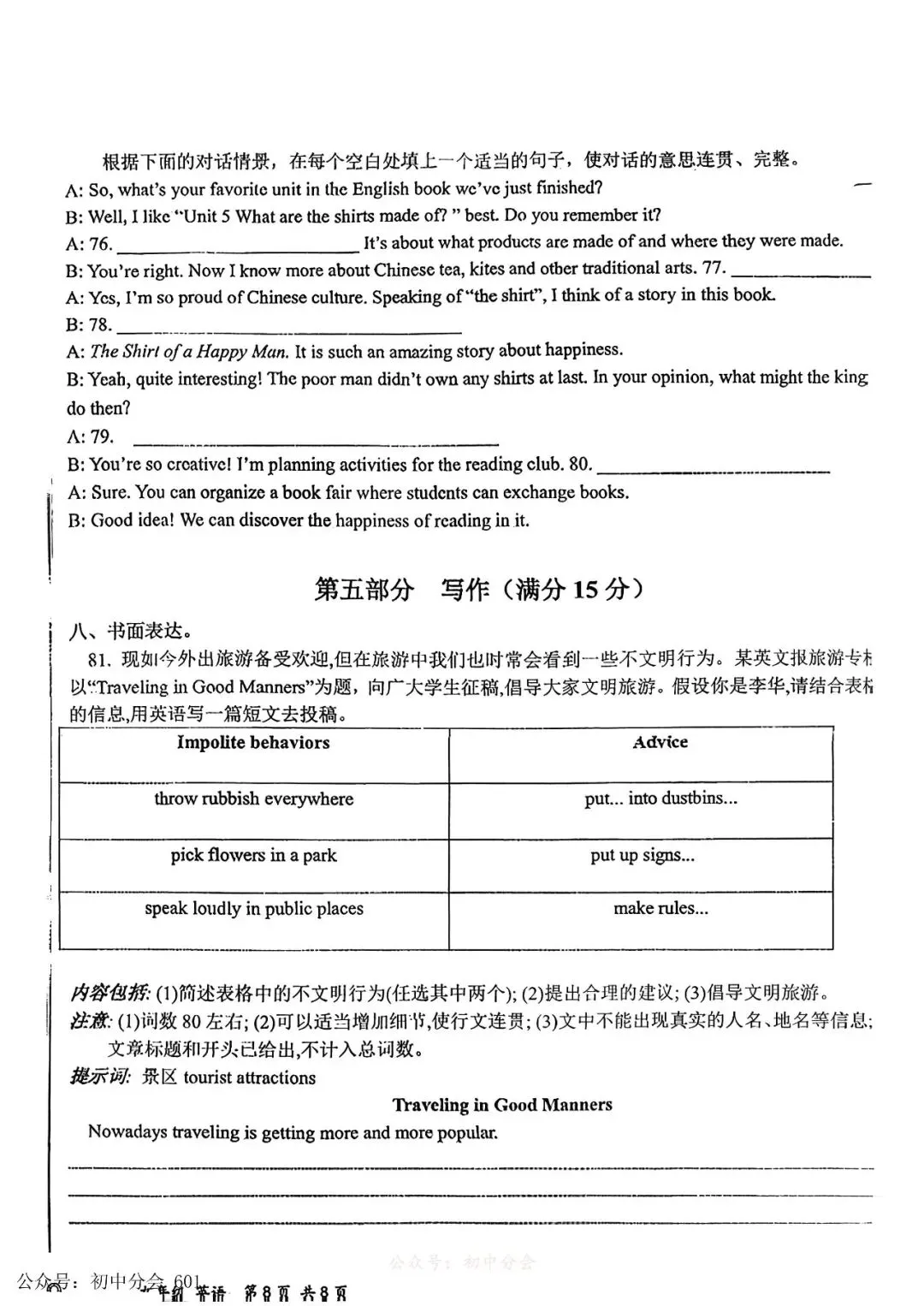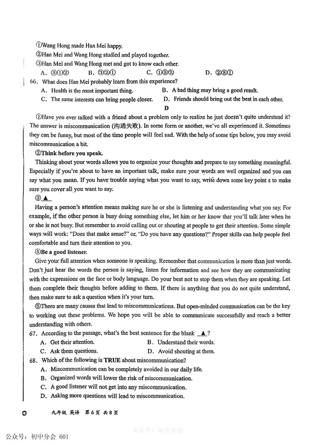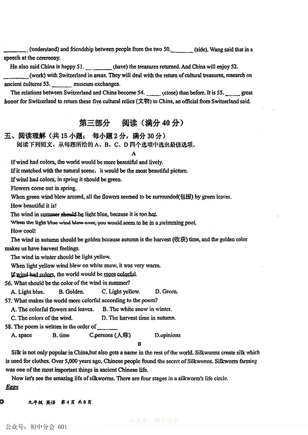 2025.1邢台市九年级期末全科试题及答案(含听力)