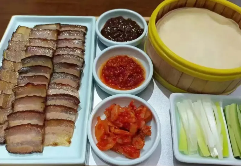 这里推荐一道“临城腌肉”。它不是那种精致摆盘的菜,而是透着股农家的实在劲儿。肉是选的上好五花,经过特殊的腌制和慢炖,端上来的时候,红亮亮的。夹一块放嘴里,肥肉部分不是油腻,而是像雪一样化开,瘦肉紧实却不塞牙,咸香里带着点时间的陈味。配上一碗白米饭,或者刚出锅的大馒头,那叫一个踏实。吃这道菜,不用端着,大口吃才对味。