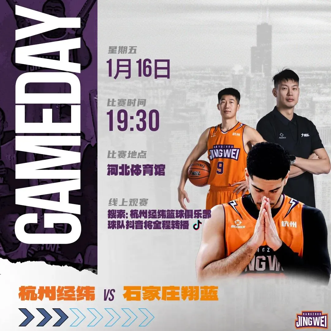 1月16日 19:30(周五)锁定杭州经纬篮球俱乐部直播间!
