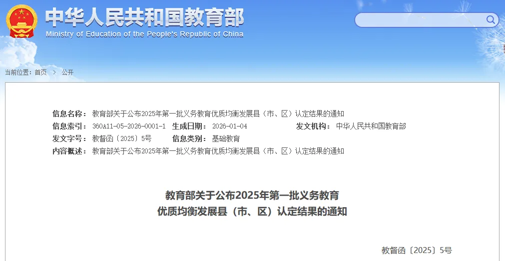 近日,教育部印发通知,决定认定北京市石景山区等326个县(市 、区)为2025年第一批义务教育优质均衡发展县。其中河北省11个县(市、区)入选,石家庄市井陉县榜上有名↓↓↓
