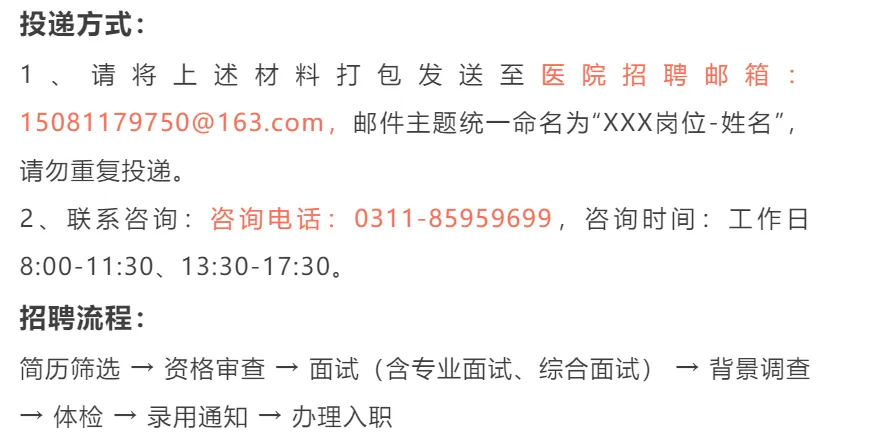 2、医院将对候选人信息严格保密,未进入下一环节者,不再另行通知,应聘材料不予退还。