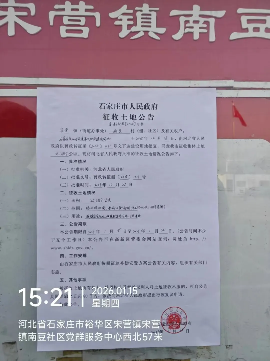 石家庄市人民政府征收土地公告 高新征收[2026]01号 预公告 高新预公告[2026]01号