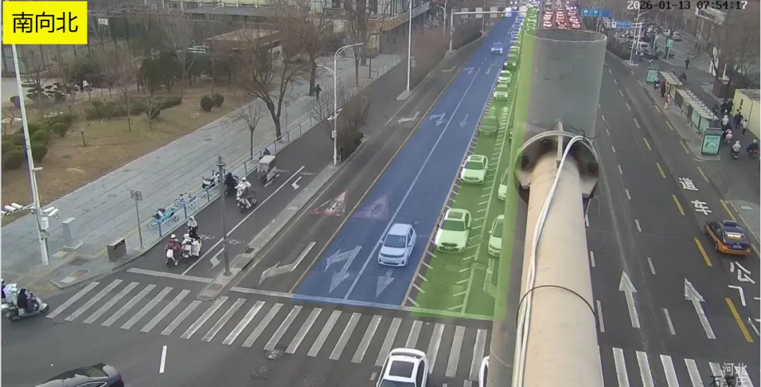 针对此情况,交通感知优化中心在路口南北直行后增加了南单放相位。南口直行在此相位放行,有效缩短南口车辆排队长度至130米,南向北通行时间缩短16%。