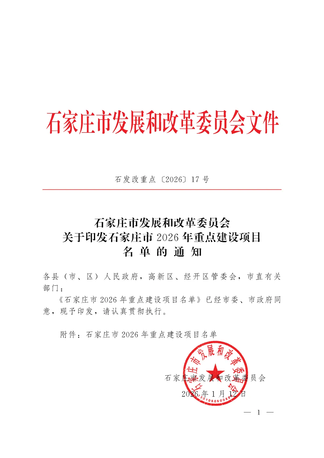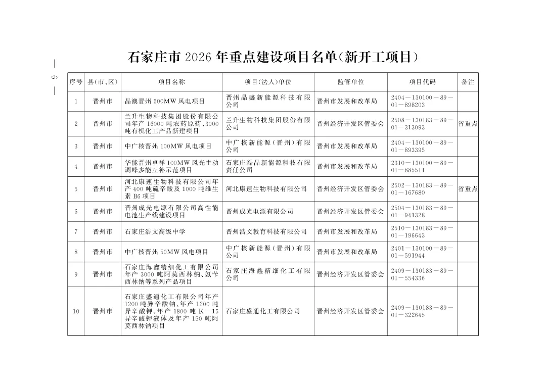 >石家庄市2026年重点建设项目名单出炉,晋州有如下项目: