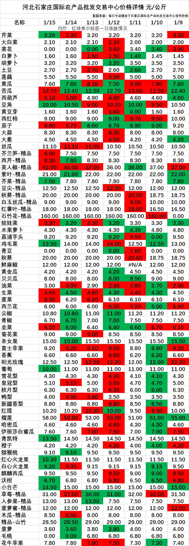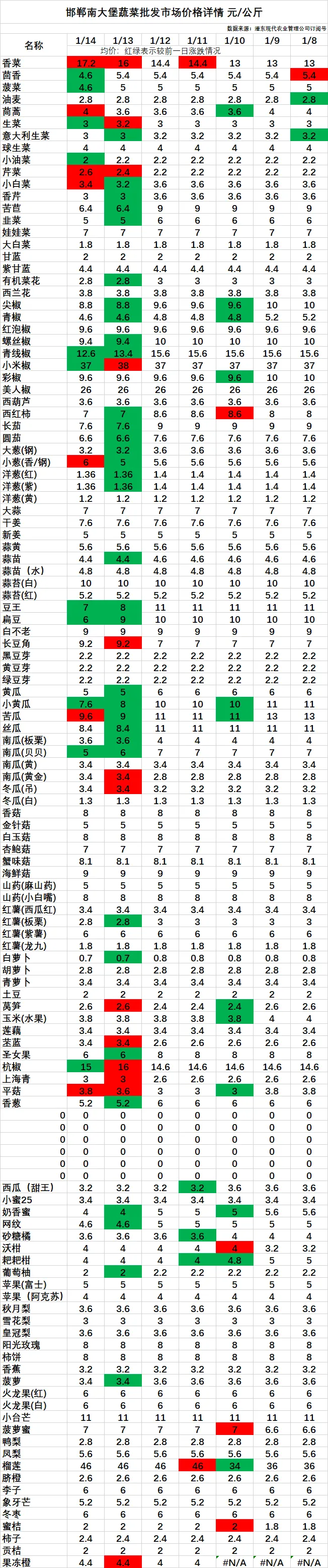 今日河北石家庄国际、邯郸南大堡市场价格详情及走势