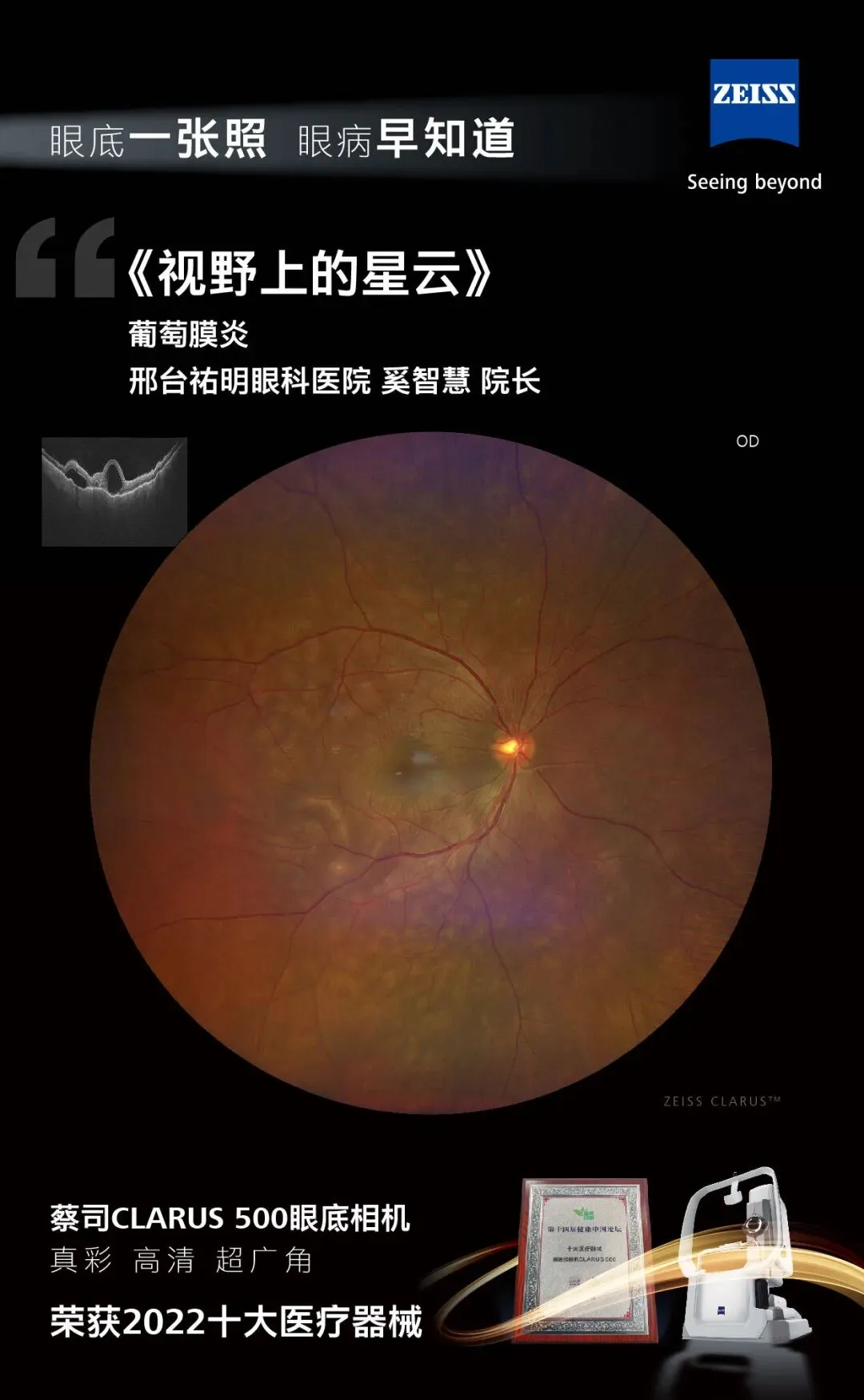 作为邢台首家启用该设备的眼科机构,我院奚智慧院长带领团队,依托国际光学巨头蔡司技术实现葡萄膜炎的精准诊断与针对性治疗,此次影像入选更是对我院诊疗实力的认可。