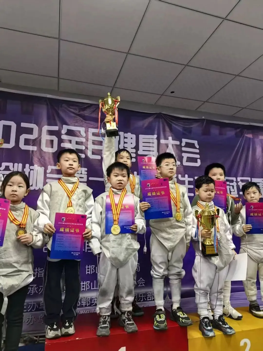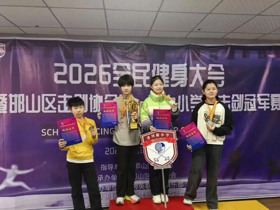 银鞍照白马,飒沓如流星。当击剑服的衣袂在赛场翻飞,当剑尖碰撞出清脆的回响,邯郸邯山区击剑协会第一届中小学生击剑比赛的热血赛场,见证了邯山区渚河路小学小剑客们的高光时刻!渚河路小学学子不负众望,凭借过硬的实力和顽强的拼搏精神,一举斩获五金四银的傲人战绩,更是凭借全体队员的优良赛风与出色表现,荣获优秀团队奖!
