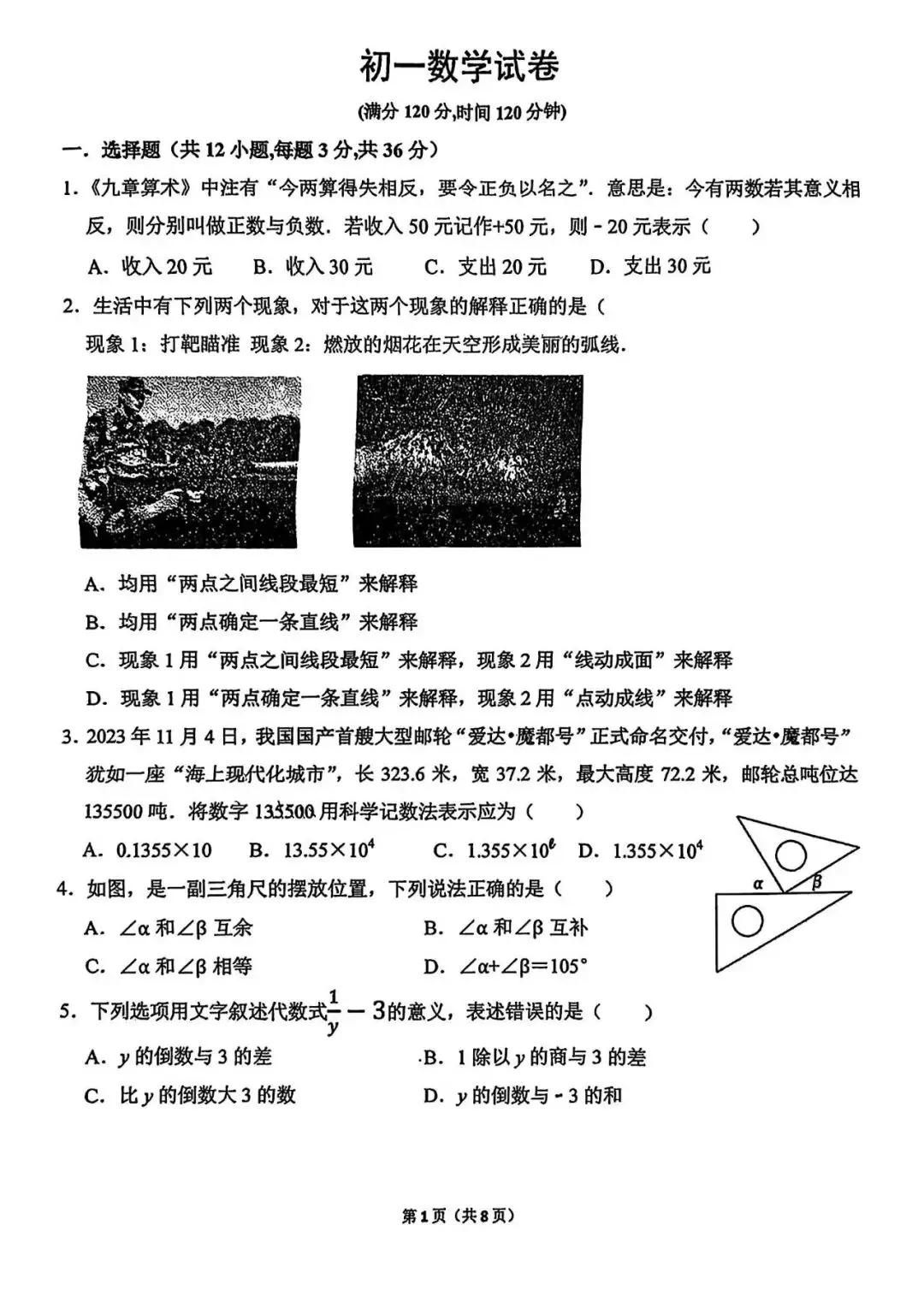 邯郸汉光中学七年级上册数学期末考试卷--可打印