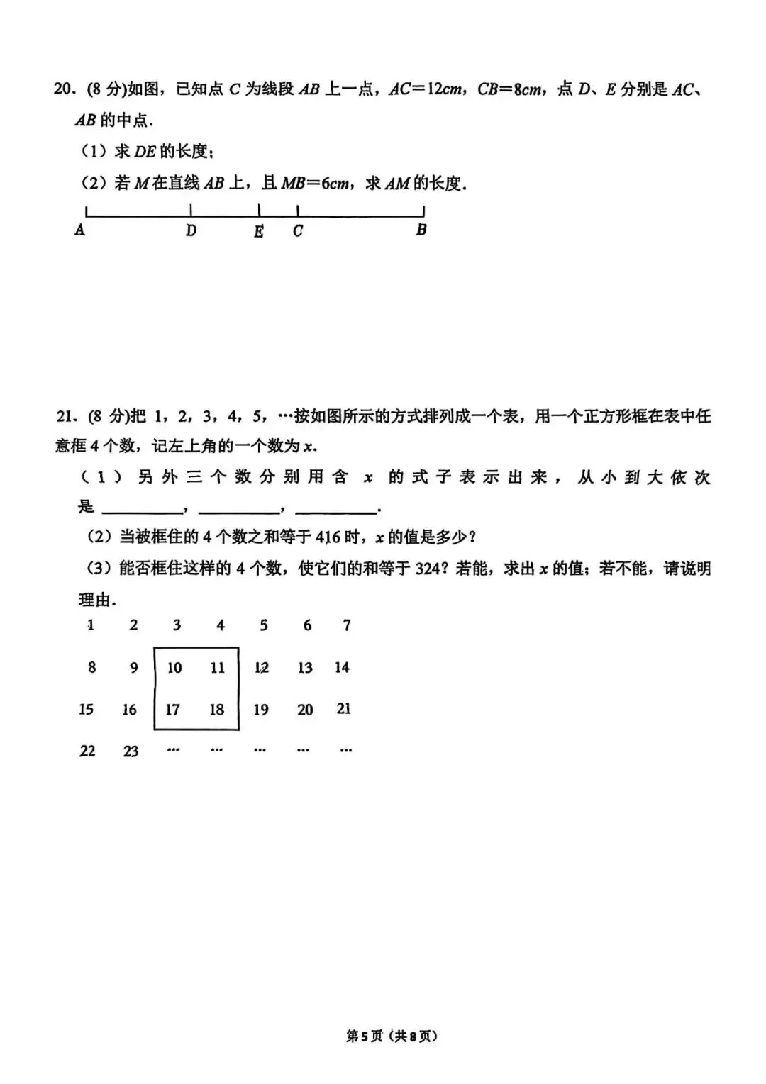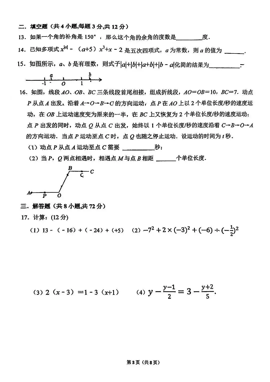 >邯郸汉光中学七年级上册数学期末考试卷--可打印