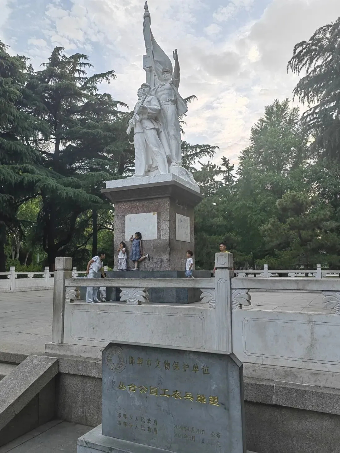 邯郸的丛台公园位于市中心,是市民休闲和怀古的地方。在这里可以对邯郸的历史和市民文化有个初步的认识。像工农兵雕塑,在其它地方已经很难看到了,可这里保存得还很好,可见这里的人是很传统重情的。再往里走,过拱桥就到了公园的中心“丛台”。在这可游览“七贤祠”,了解一下赵国当时的国之栋梁们,恍然大悟原来“赵氏孤儿”和廉颇与蔺相如“将相和”的事是发生在这里。“狭路相逢勇者胜”的典故源于赵奢用兵,“纸上谈兵”的赵括虽勇猛却毁掉了赵国40万军队,使赵国从此一蹶不振。赵国的李牧则长期驻守北部边境,用“坚壁清野”大破匈奴进扰,后又大破秦军,战绩与“白起、王翦、廉颇”齐名,名列战国时期四大名将。孙膑的“围魏救赵”、蔺相如的“完璧归赵”、赵奢“奉公守法”、项羽“破釜沉舟”等等,都与邯郸有关。