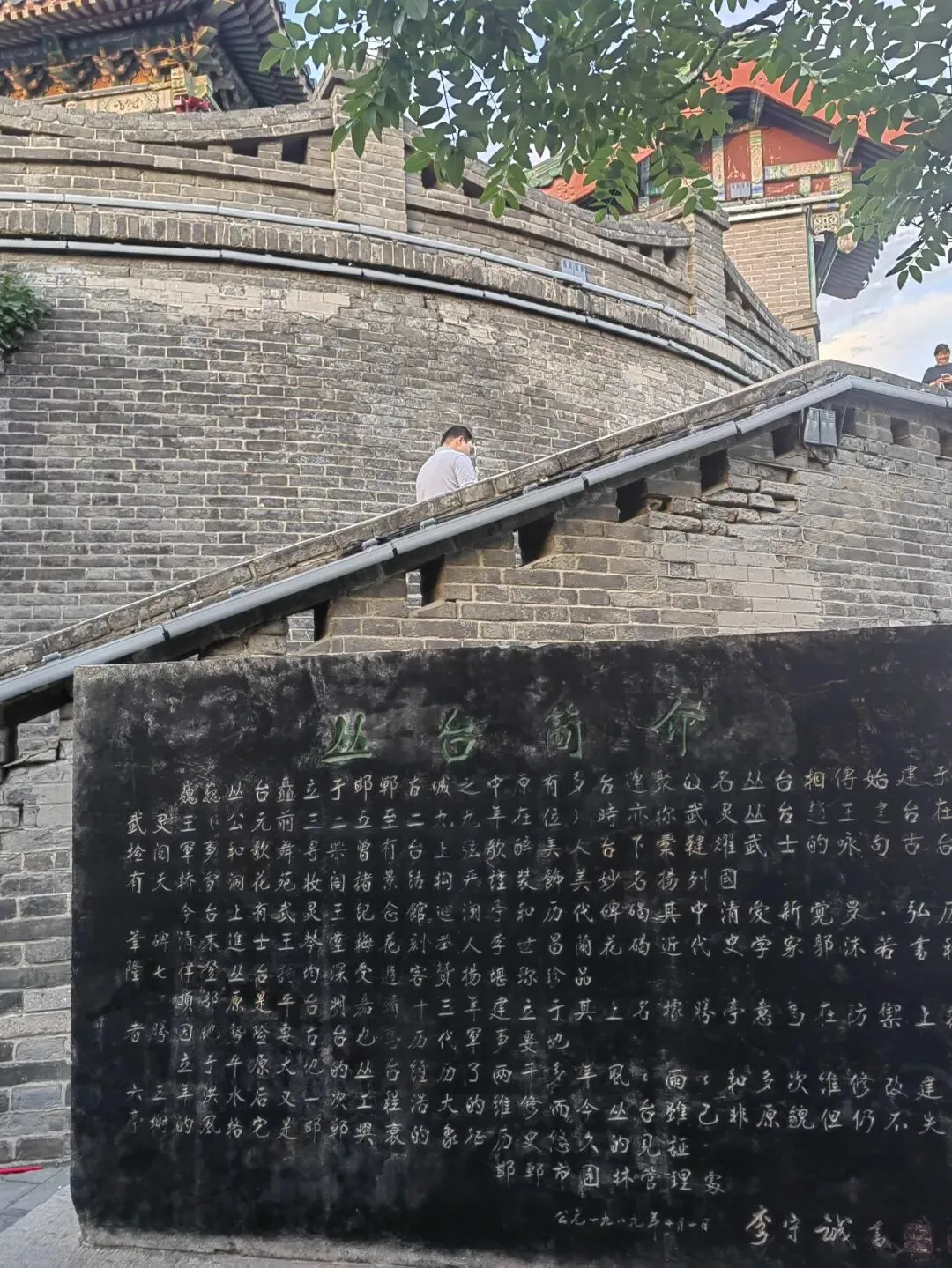 邯郸丛台是赵武灵王实施“胡服骑射”文明互鉴后检阅军队与观赏歌舞的地方,乃军机重地。建筑群具有古典亭榭的独特风格。高台上的据胜亭里,有赵武灵王石雕立像,威武霸气。自立自强、善于学习的一代君王变革求新、奋发有为的精神为后世树立了榜样。清乾隆皇帝在此还特题诗一首,以表敬意。