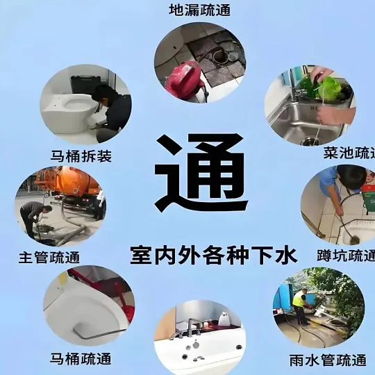 疏通类:下水道、马桶、蹲厕、地漏、下水管;脸盆、菜盆、墩布池;坐便、蹲便、小便池;主管道、疑难管道