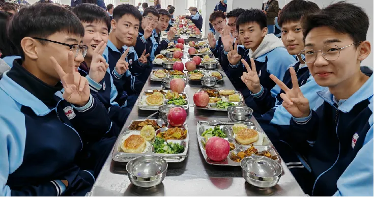学校食宿条件标准高,餐厅管理规范,菜品多样,美味可口,饭菜质量全市一流,打造了“文明餐厅、无声餐厅、节约餐厅”;宿舍8人标间,内部配有独立卫生间、洗漱台、提供24小时热水,宿舍配有中央空调,冬暖夏凉,通过班主任、值班教师和生活教师的全程陪护监管,保证学生睡前秩序、睡眠时长和高质量睡眠,让学生感到家一般的舒适和温馨。