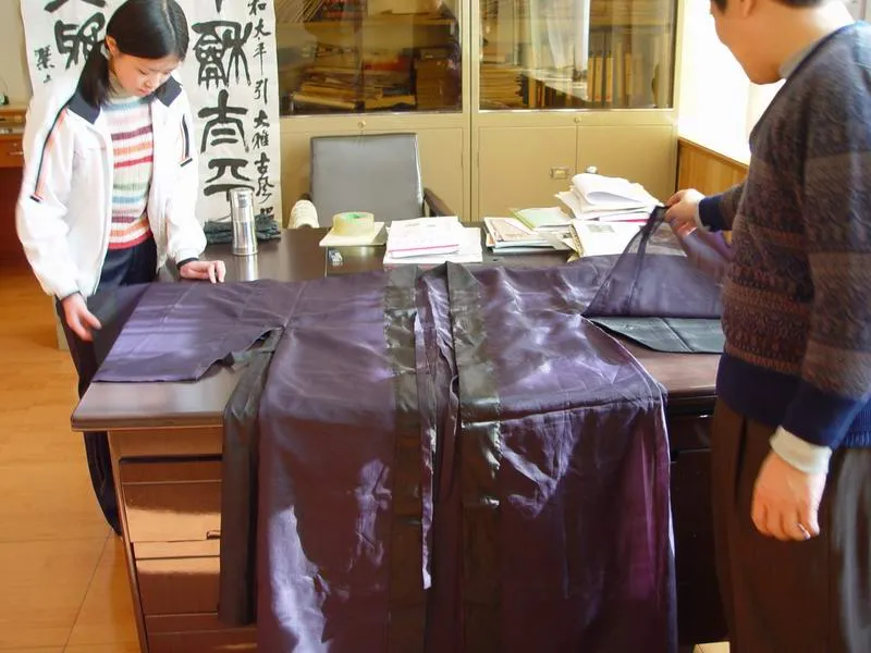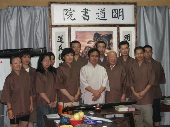 2005年11月20日,从事读经推广的王财贵教授来到石家庄进行读经讲座,高士涛、傅路江向王财贵赠送书法作品和深衣。