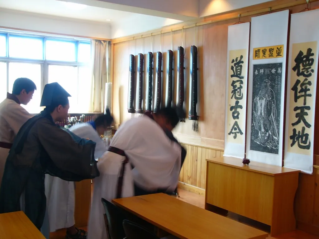 2005年3月,高士涛、笑非、傅路江、cici、华夏族裔、吉恩煦等人在渤海琴社召开会议首次探讨汉服、传统礼乐、儒学教育等问题。笑非身着儒服从山东赶来,并留在石家庄行唐,在傅路江先生创办的“明德学堂”从事私塾教育。汉服读经也由此开始。