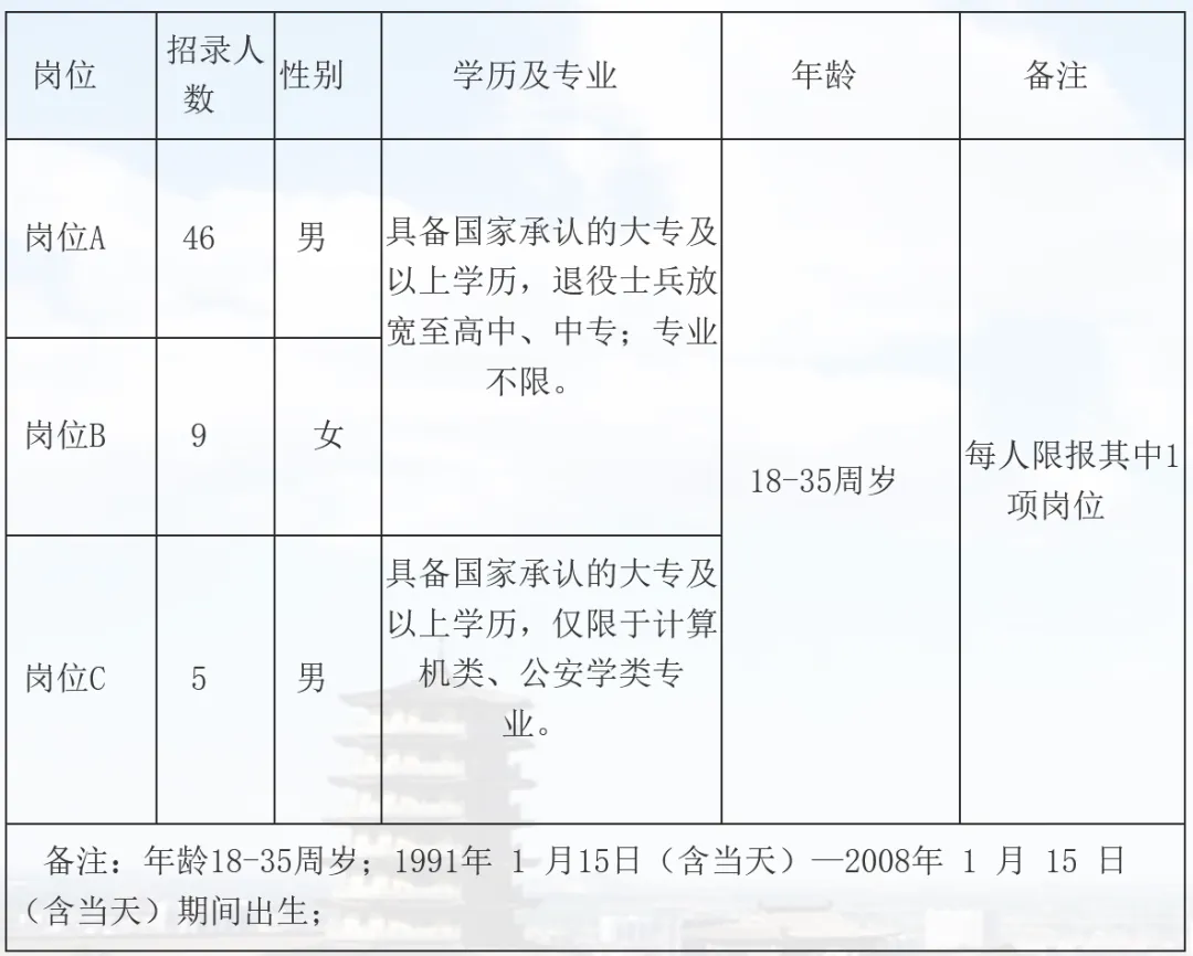6、具备岗位所需要的学历及其他条件,以报名第一天为准;