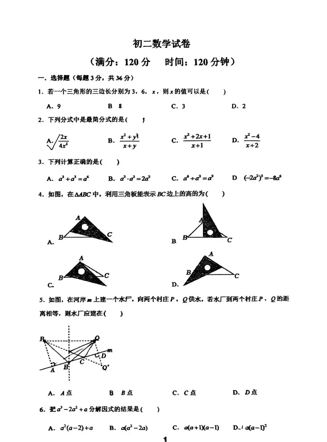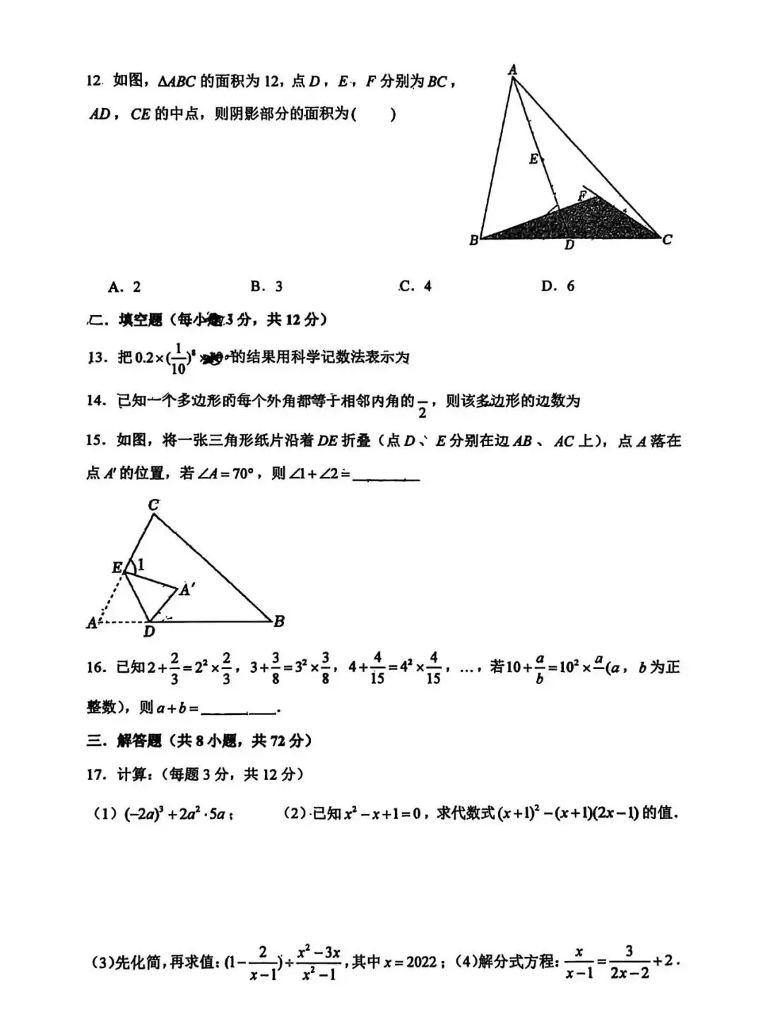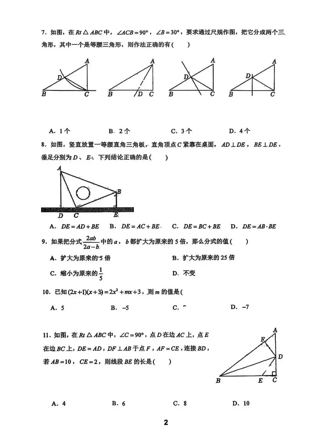 >邯郸汉光中学八年级上数学期末考试卷--可打印